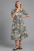 Umgee Full Size Printed Smocked Cuff Puff Sleeve Midi Dress Plus Size