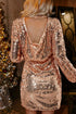 Backless Sequin Mock Neck Long Sleeve Mini Dress