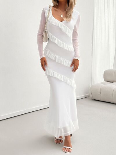 Devine Ruffled Surplice Long Sleeve Maxi Dress