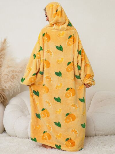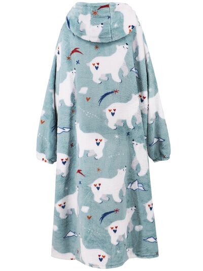 Fuzzy Pocketed Long Sleeve Hooded Lounge Dress