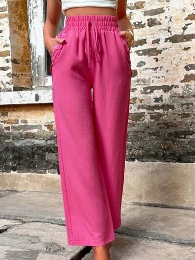 Tied High Waist Wide Leg Pants with Pockets