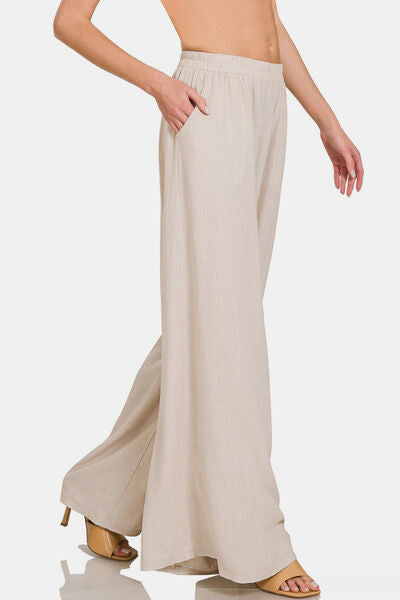 The Pleated Linen Blend Wide Leg Pants are a sophisticated and chic addition to your wardrobe. The pleated design adds a touch of elegance and movement to these wide-leg pants. Made from a linen blend fabric, they offer breathability and comfort for all-day wear. The wide-leg silhouette is both stylish and flattering, providing a relaxed yet polished look. Perfect for both casual and dressy occasions, these pants can be dressed up with heels or styled casually with sandals. Elevate your outfit with the timeless and versatile Pleated Linen Blend Wide Leg Pants for a fashionable and on-trend ensemble.