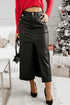 Slit PU Leather Midi Skirt