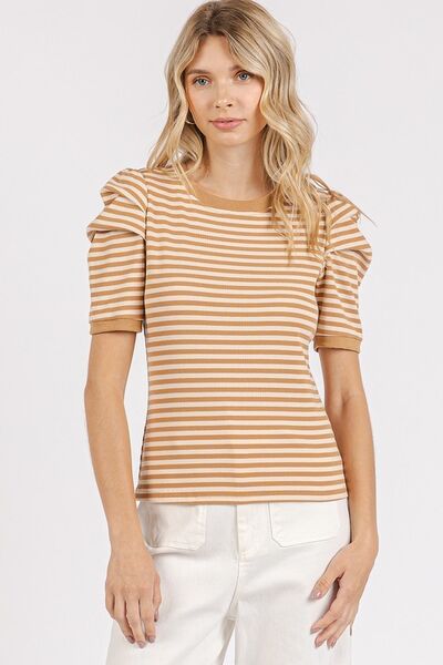 Mittoshop Striped Round Neck Puff Sleeve T-Shirt